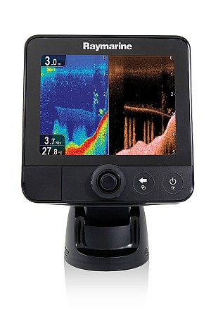 Эхолот Raymarine Element в режимах Chirp и бокового обзора Sidevision, структурного режима Dovnvision на частоте 1,2 МГц...